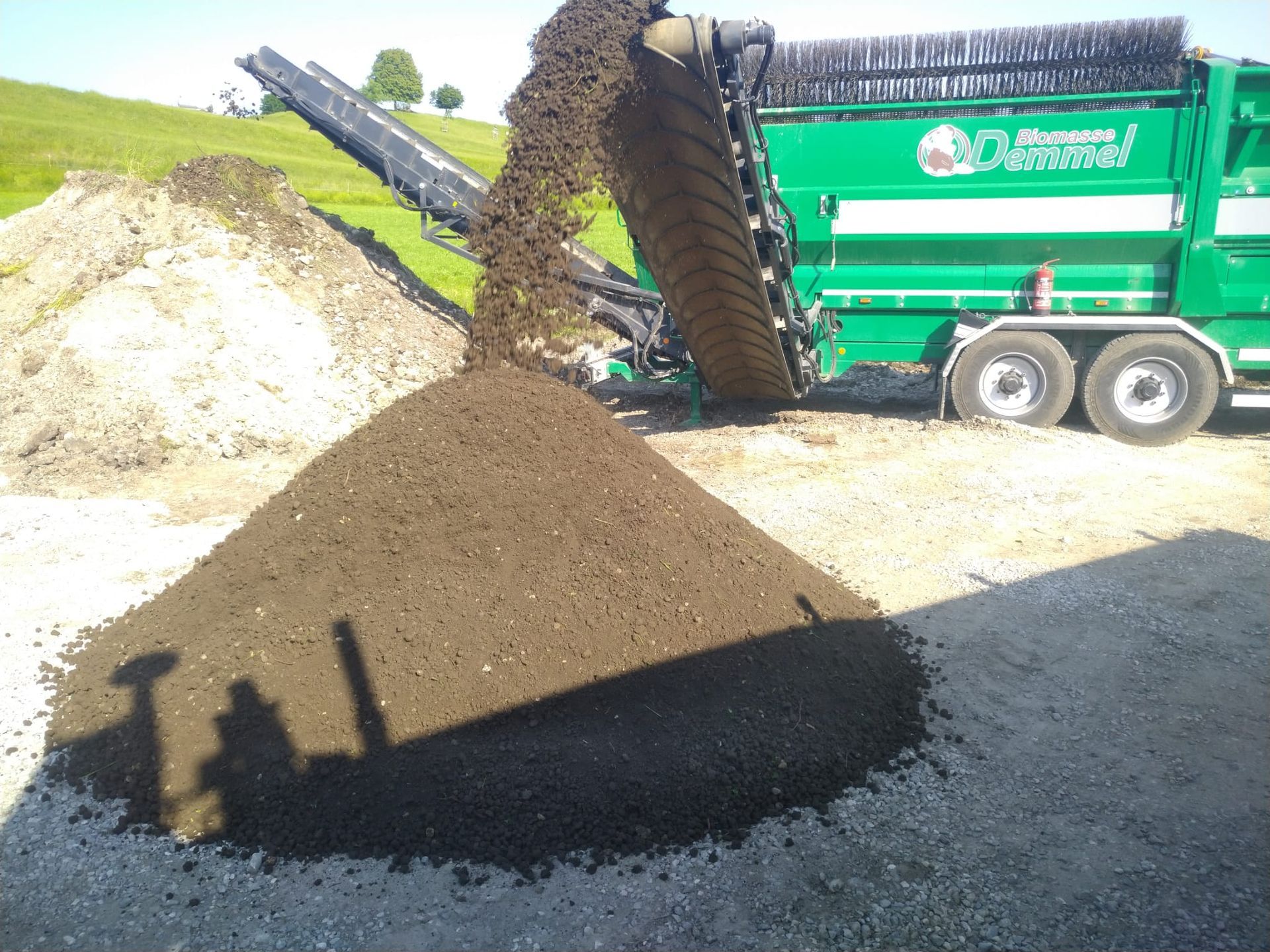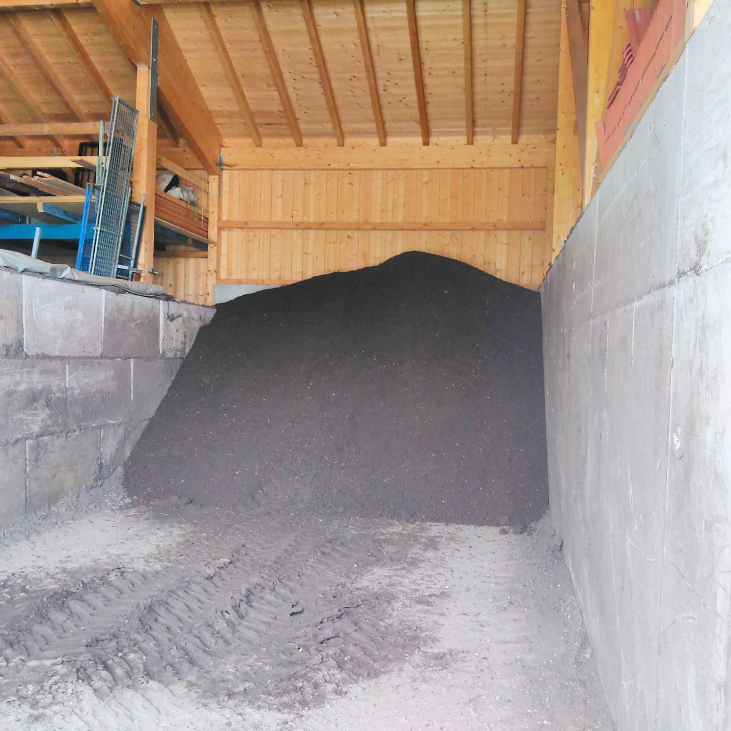 Der gesiebte Humus wird in der Halle gelagert, ist somit immer trocken und verfügbar bei jedem Wetter.